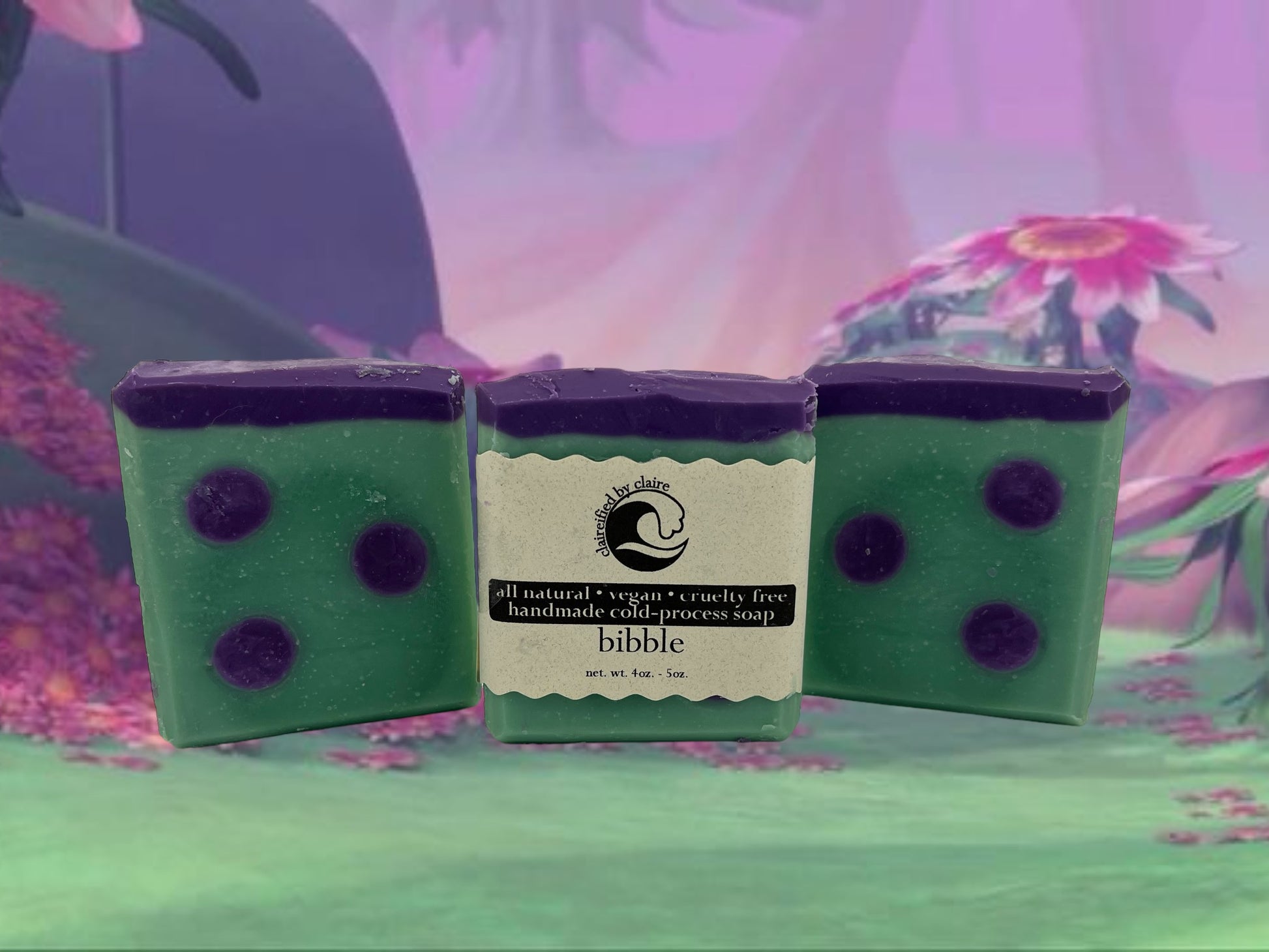 Transform your shower into a whimsical adventure with Bibble Handmade Soap. Inspired by the Barbie Fairytopia Series, this soap will transport you to a magical land with its enchanting scent and moisturizing lather. Embrace your inner fairy and treat your skin with this delightful soap. (Bibb-le-ave us spellbound!)