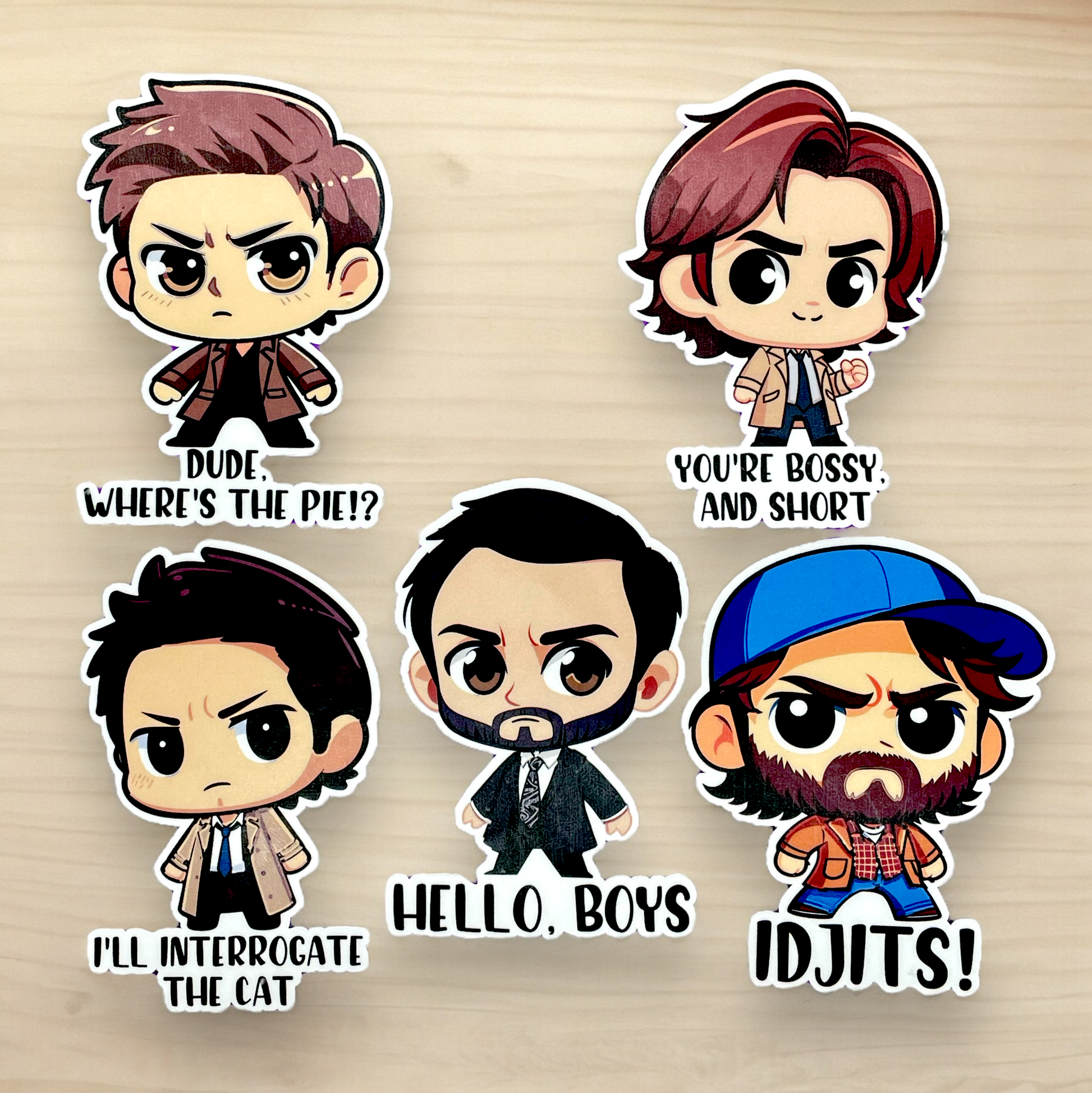 Boys of Supernatural Chibi Style Stickers with Quotes