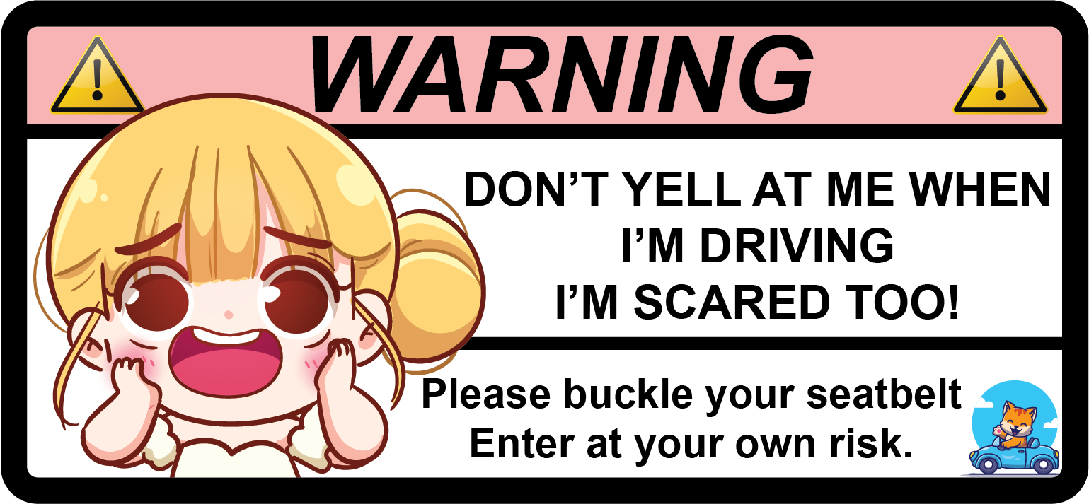 Cool-down your car passenger's anxiety with this unique anime sun visor sticker featuring a humorous "Don't yell at me when I'm driving, I'm scared too!" message and buckle your seatbelt reminder! Get your daily commute jollies with this fun visor accessory!