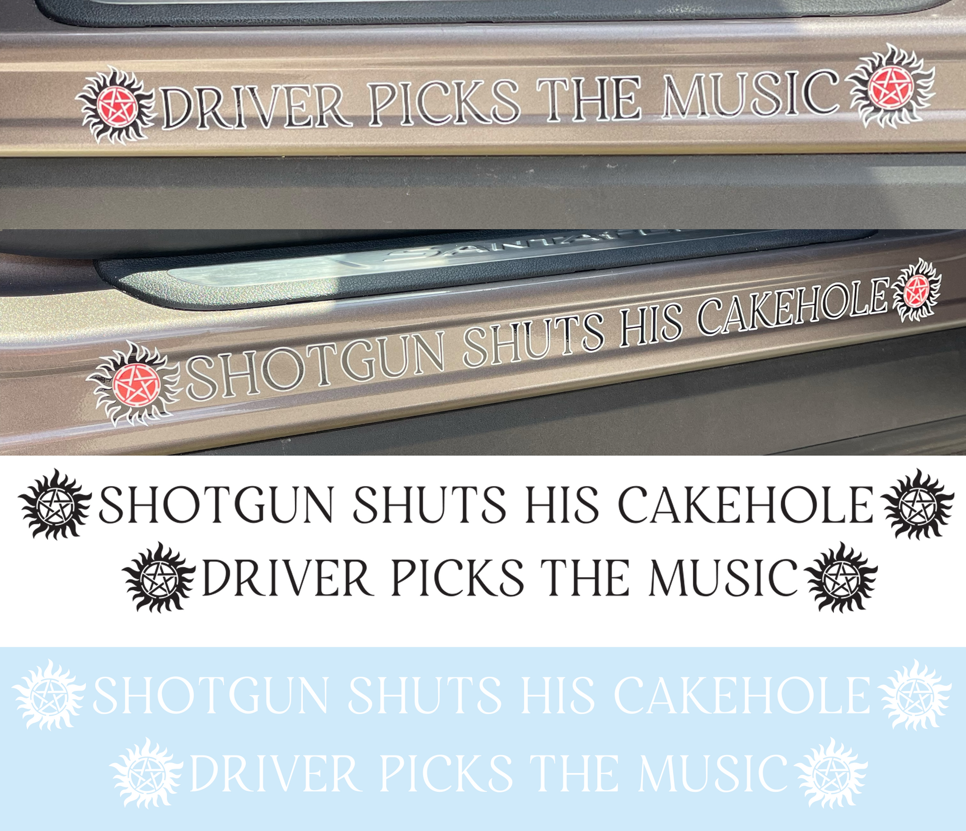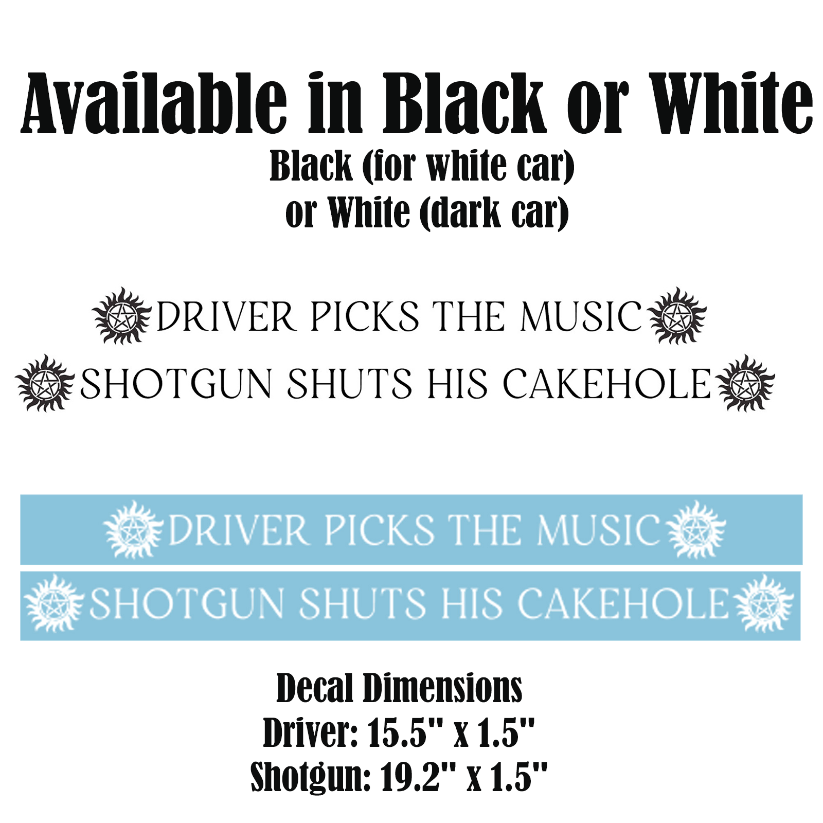 Supernatural TV Show Driver Picks the Music Car Sticker - Shotgun Shuts his Cakehole Decal with Application Instructions