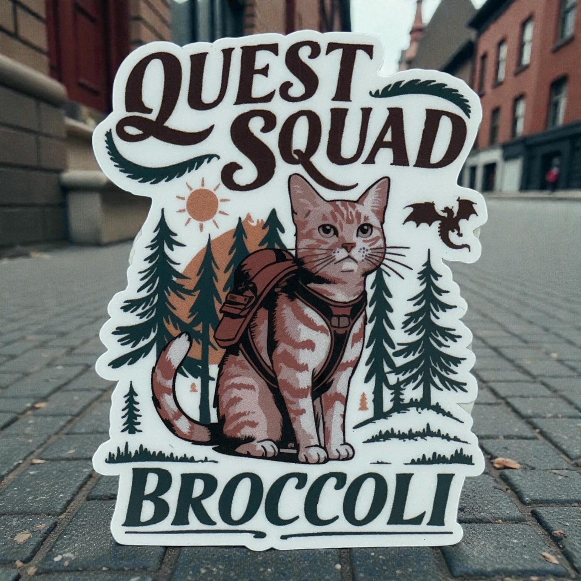 - Sticker sizes (in inches): Proud 2.9x3, Infinite 3x1, My Chair 2.75x3.3, Fragile 2.5x2.23, Scorch 2x2.35, Wingleader 2x2.15, Broccoli 2.13x2.85