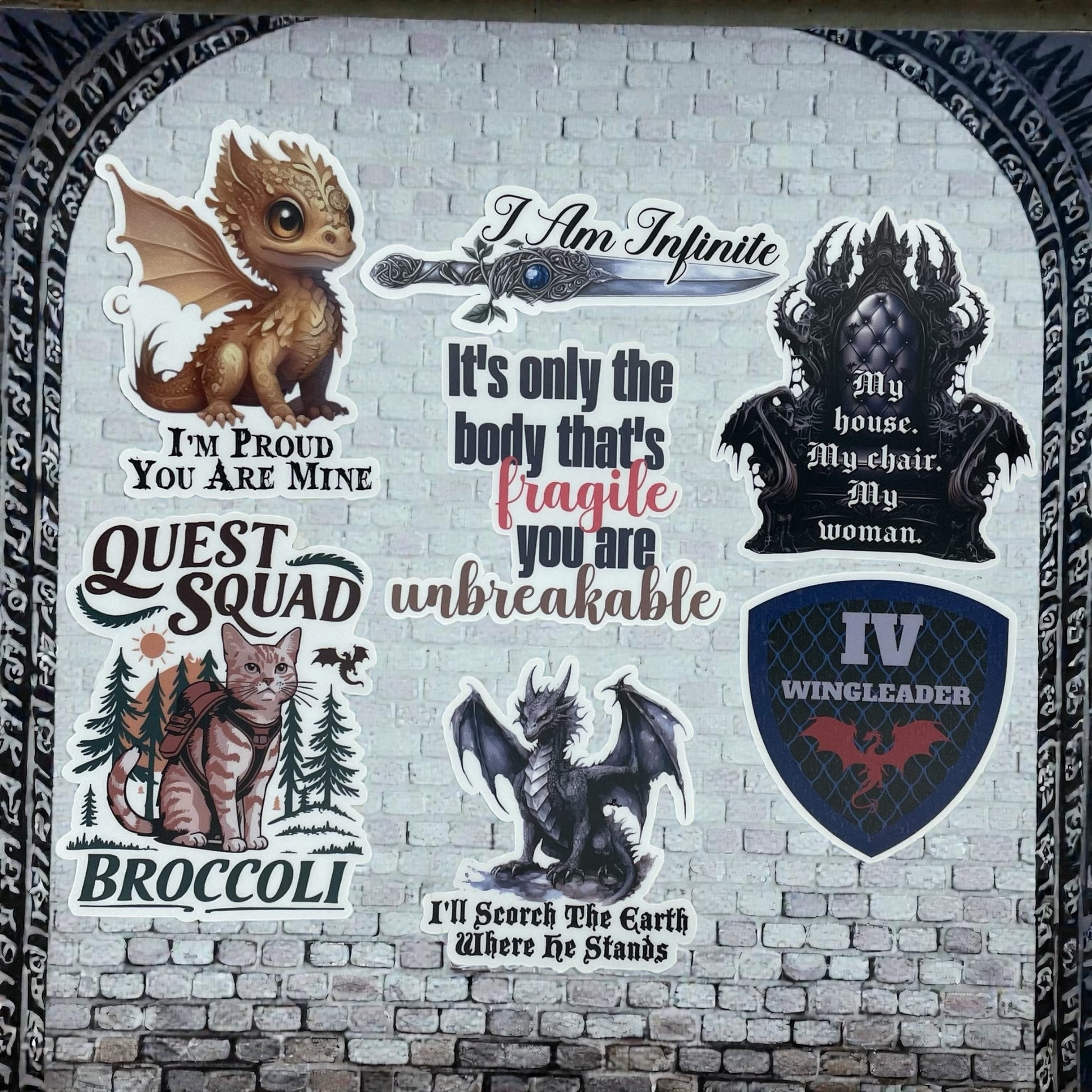 Fourth Wing Inspired Sticker Set – Fantasy Book Stickers, Individual or Full Set, Bookish Gifts, Dragon Rider