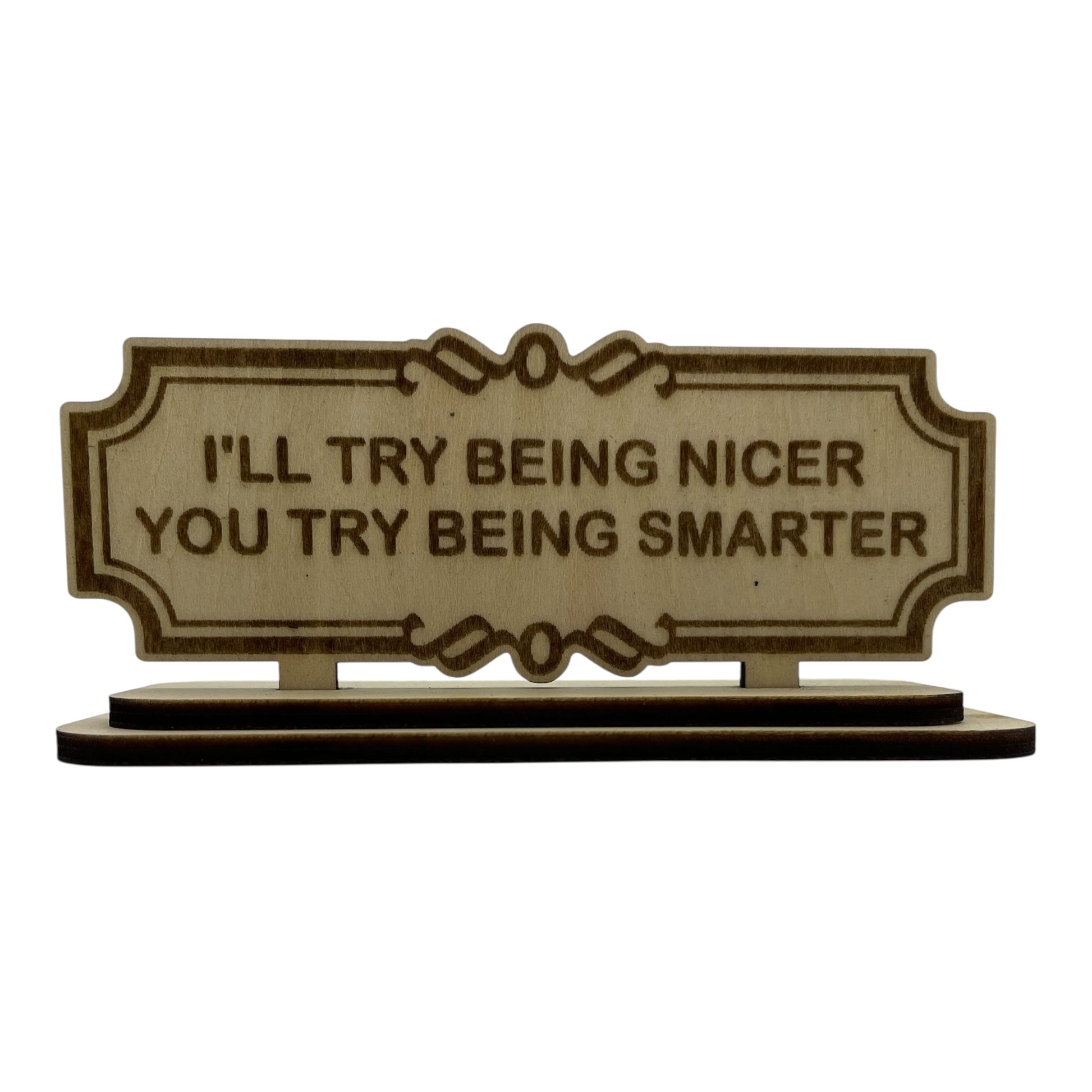 Add a little humor (or a lot of sarcasm) to your workspace with these funny office desk signs! Made from 3mm basswood plywood, each sign features a snarky or dark humor phrase that’s perfect for coworkers, friends, or yourself. Whether you love sarcasm, dark humor, or just need to keep the mood light in the office, these signs make it clear where you stand.