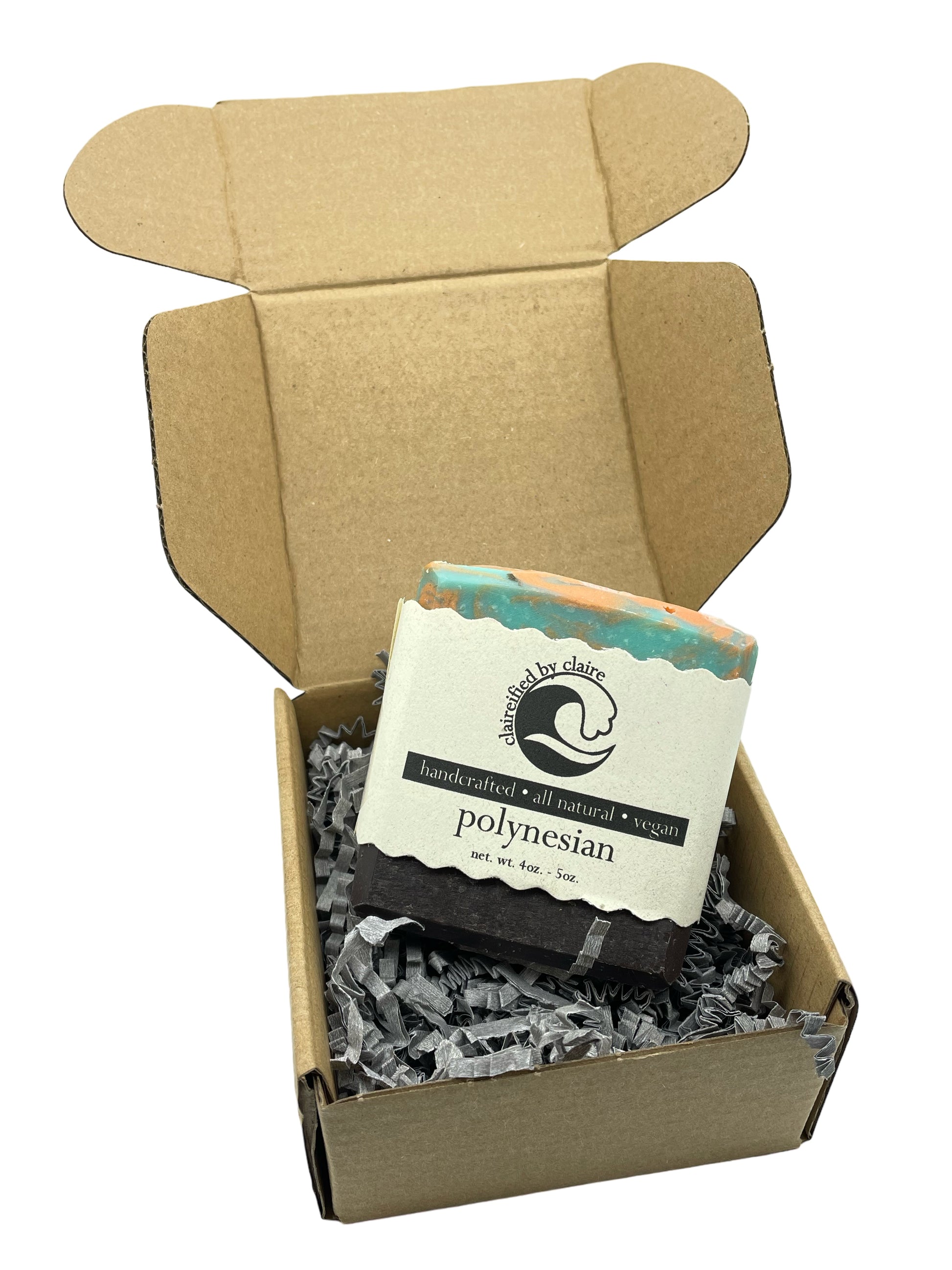 - Soap packaged in sturdy box with paper shreds.