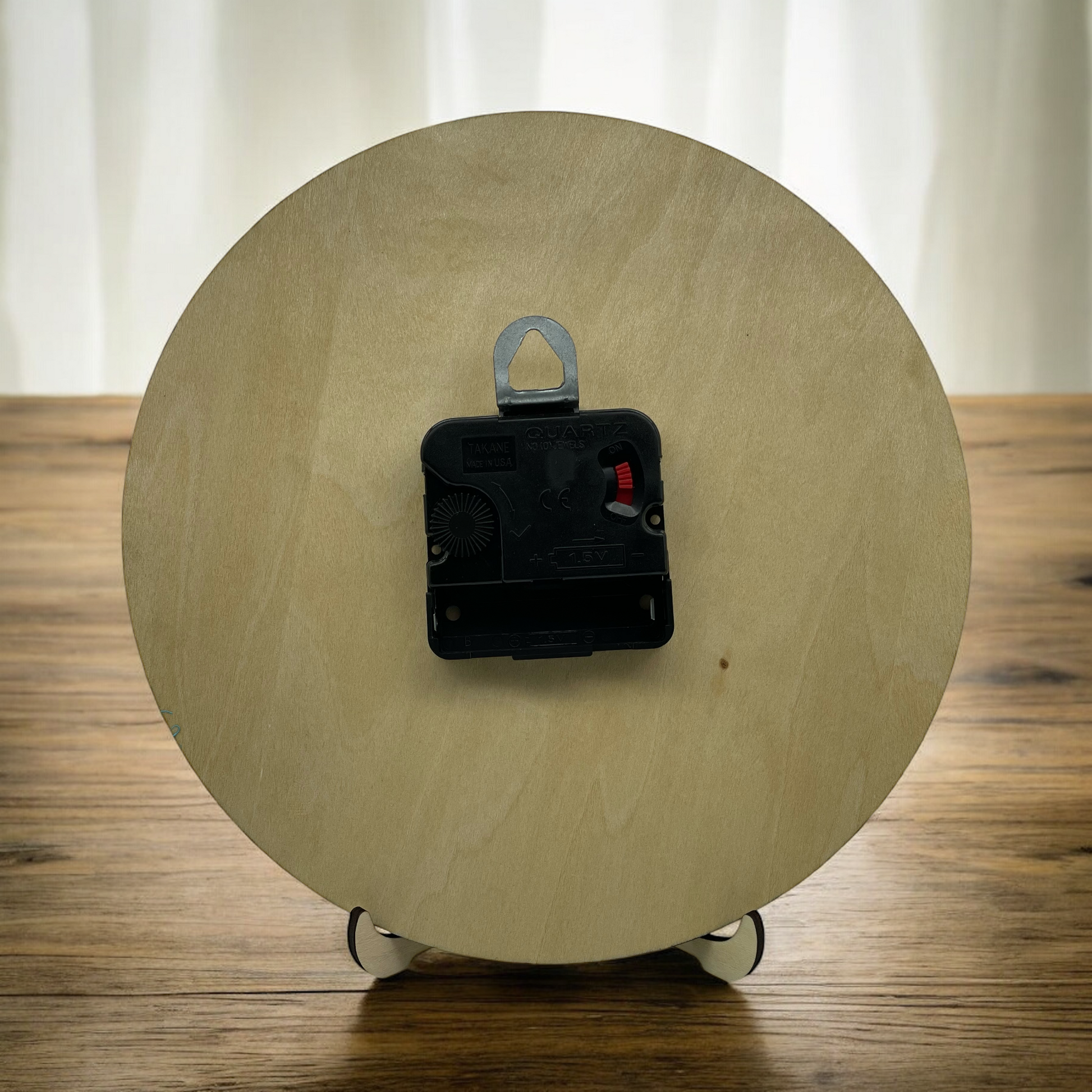 - Quartz clock movement with wall hanger. AA battery required (not included).