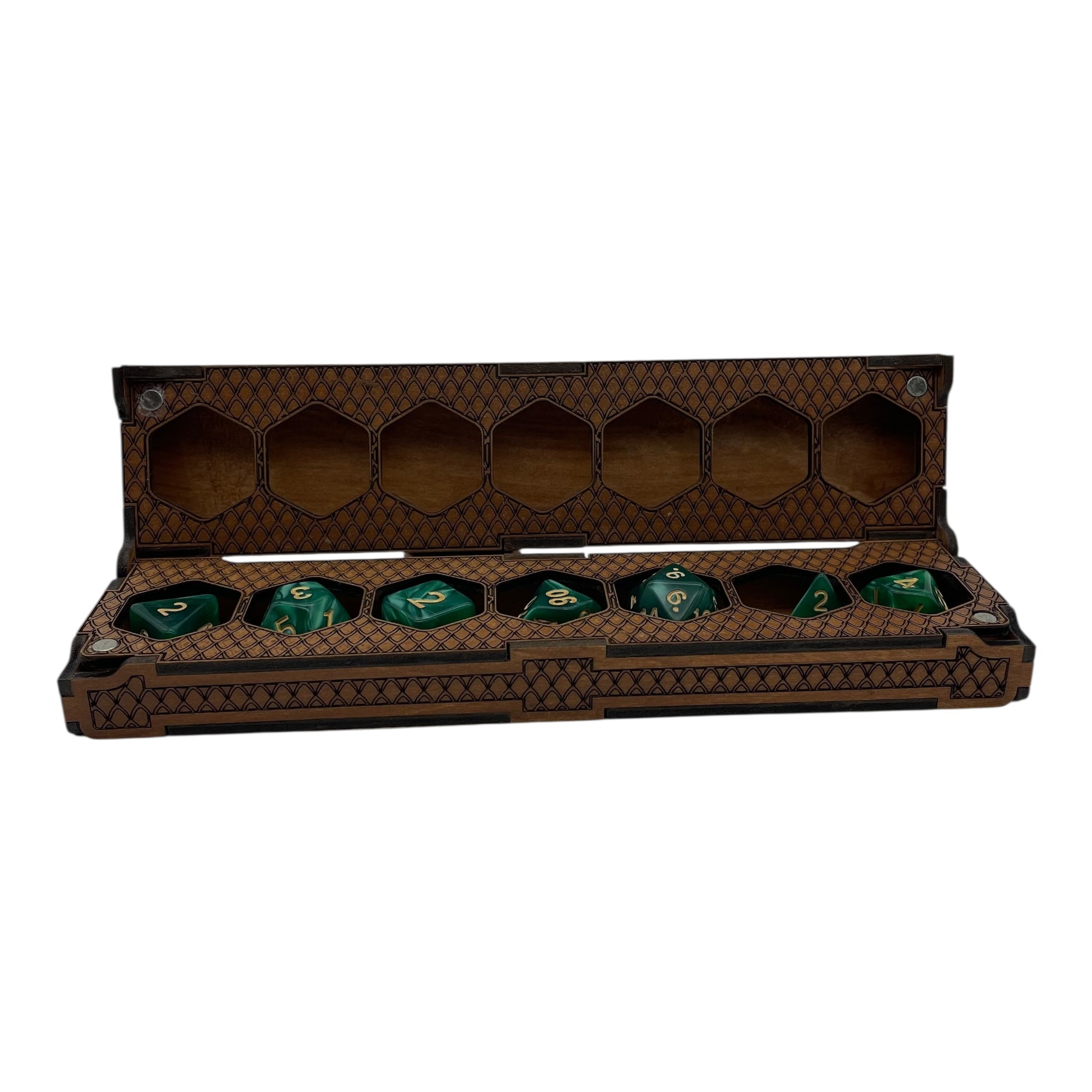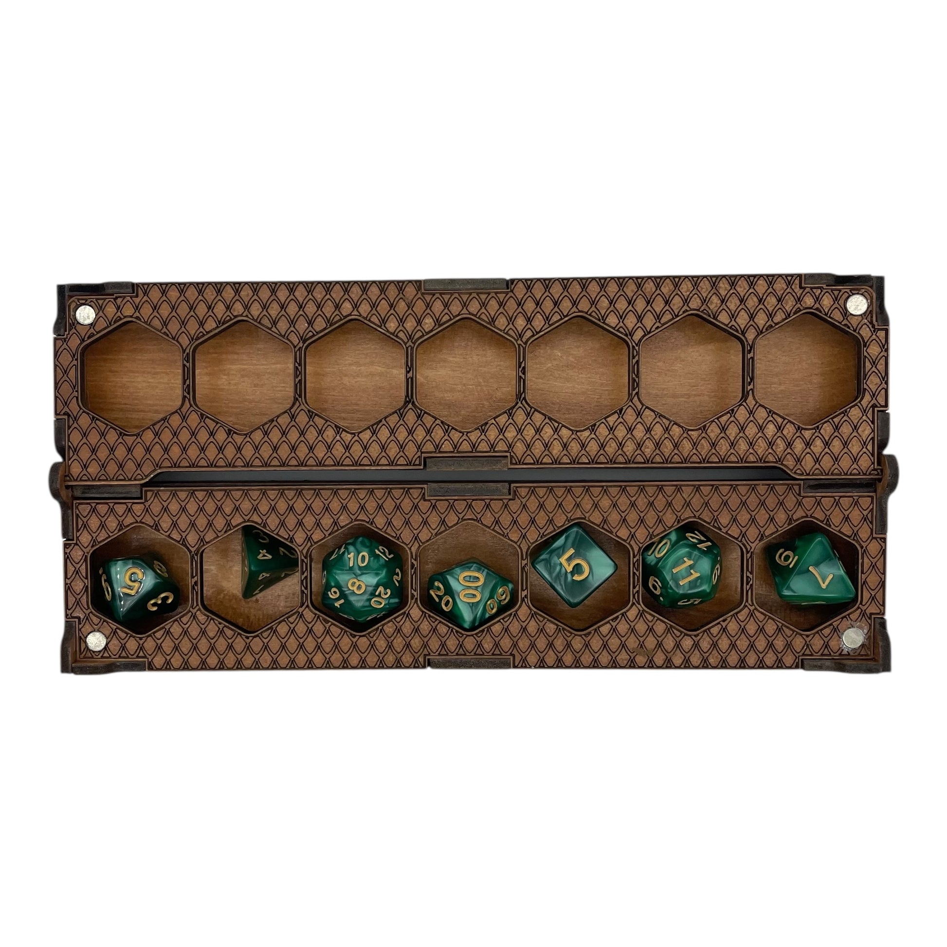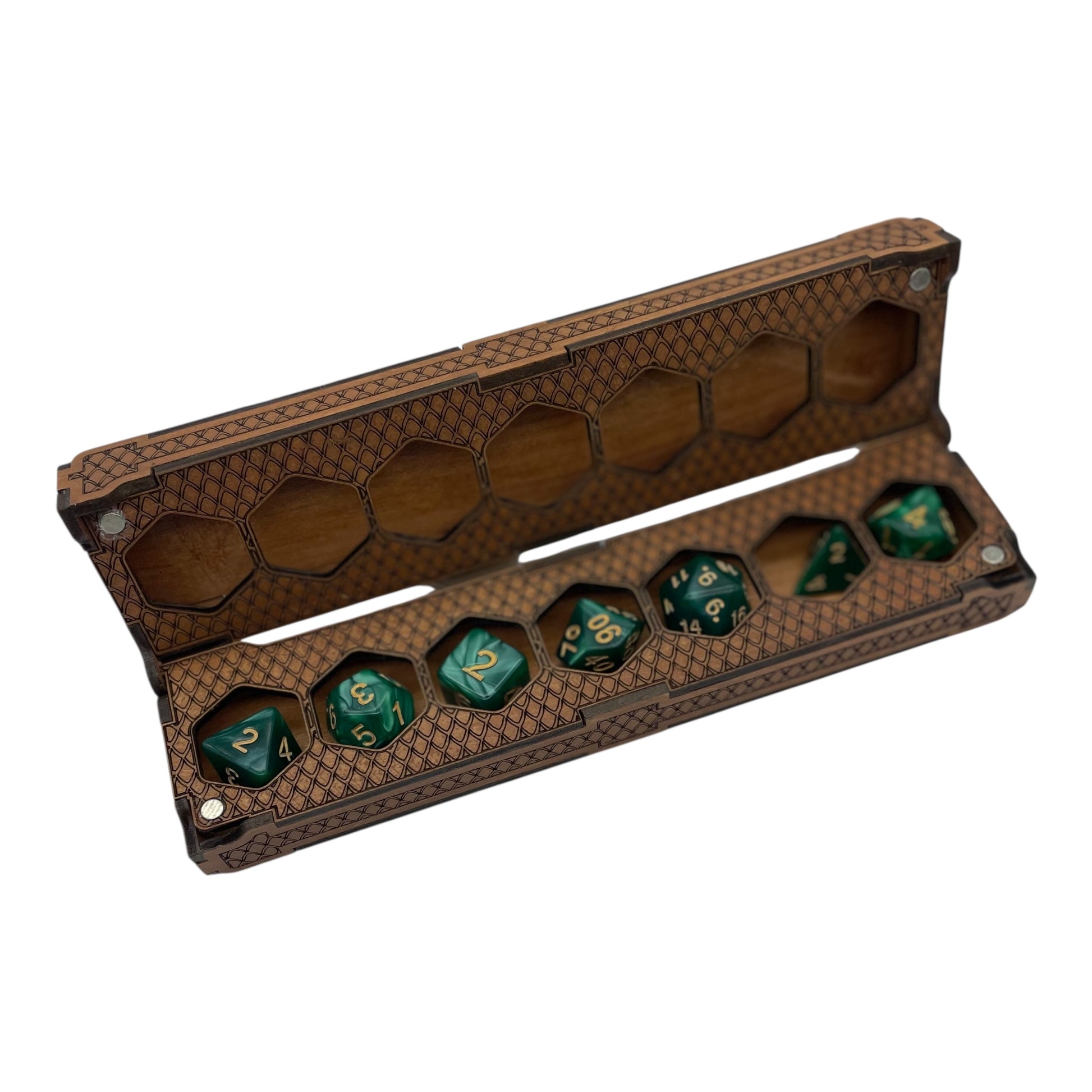 Laser Engraved D&D Dice Holder | Magnetic Wooden Dice Box | RPG Dice Case for Tabletop Gamers
