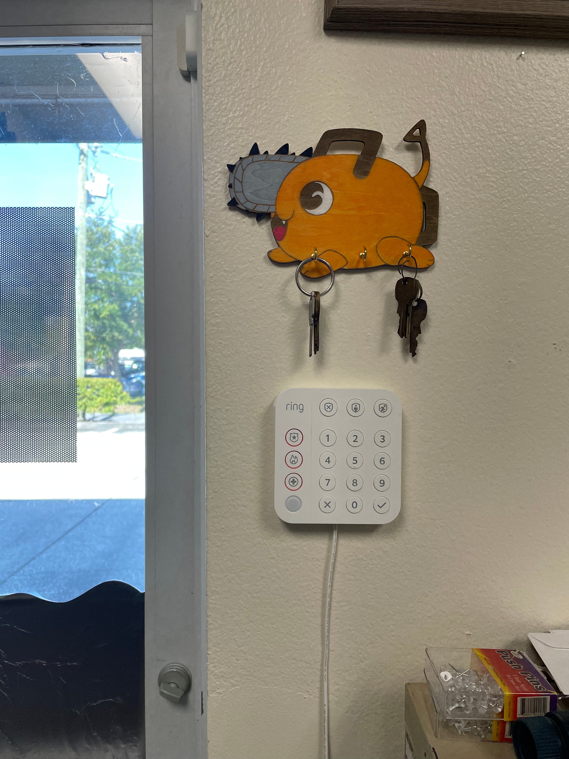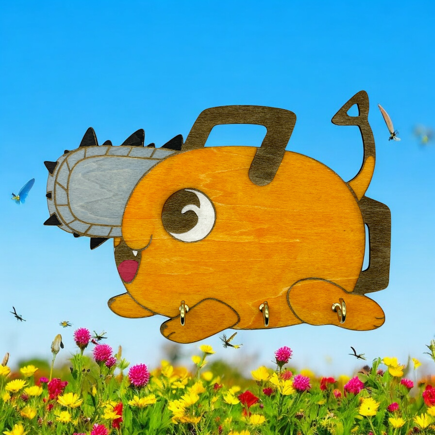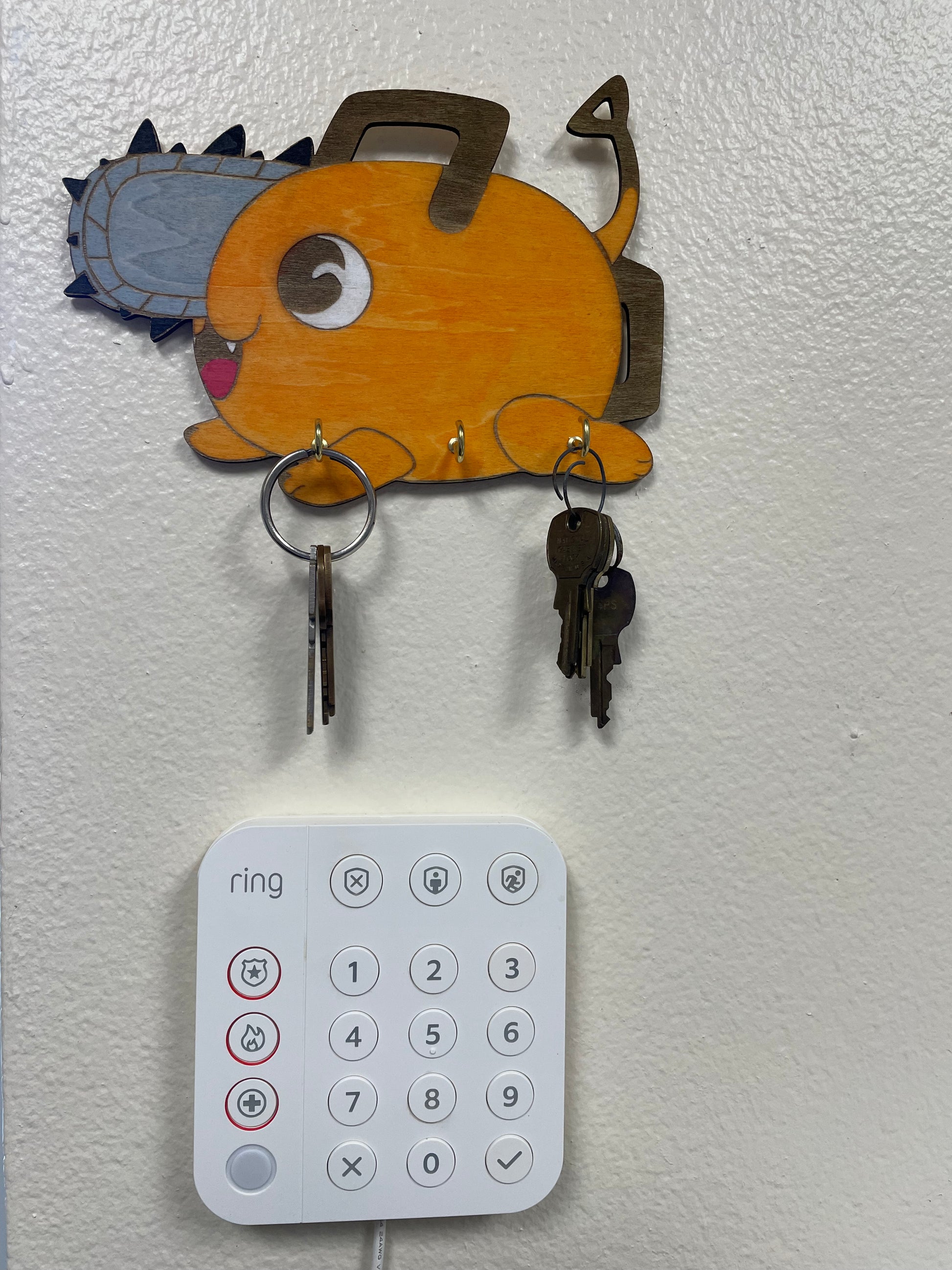 Never lose your keys again with this playful and quirky Pochita inspired hand painted key holder!
