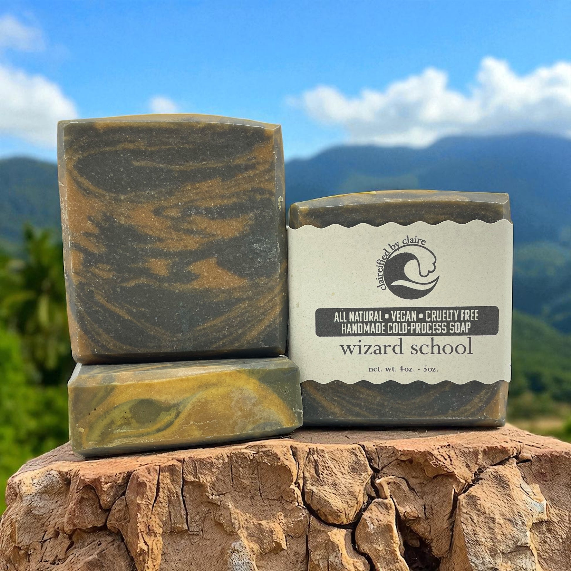🪄 Transport yourself to the enchanted halls of wizard school with this Hogwarts-inspired handmade vegan soap. Infused with a spellbinding blend of citrus, florals, and woods, Wizard School is perfect for witches, wizards, and muggles who crave a little everyday magic in their skincare routine.